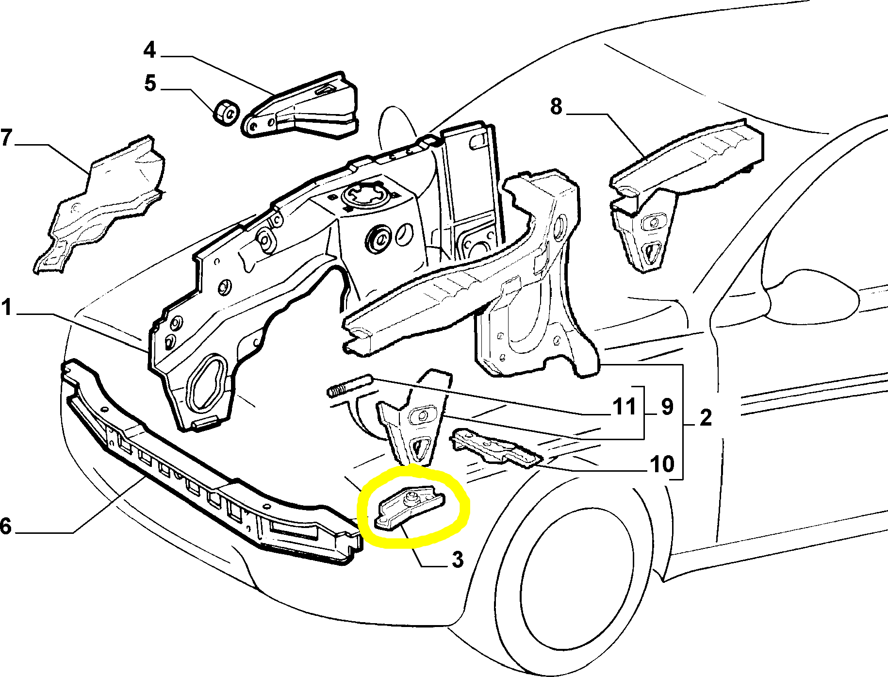 Lancia Y (95-03) Ypsilon (03-09) Piastrina Sinistra Traversa Anteriore.