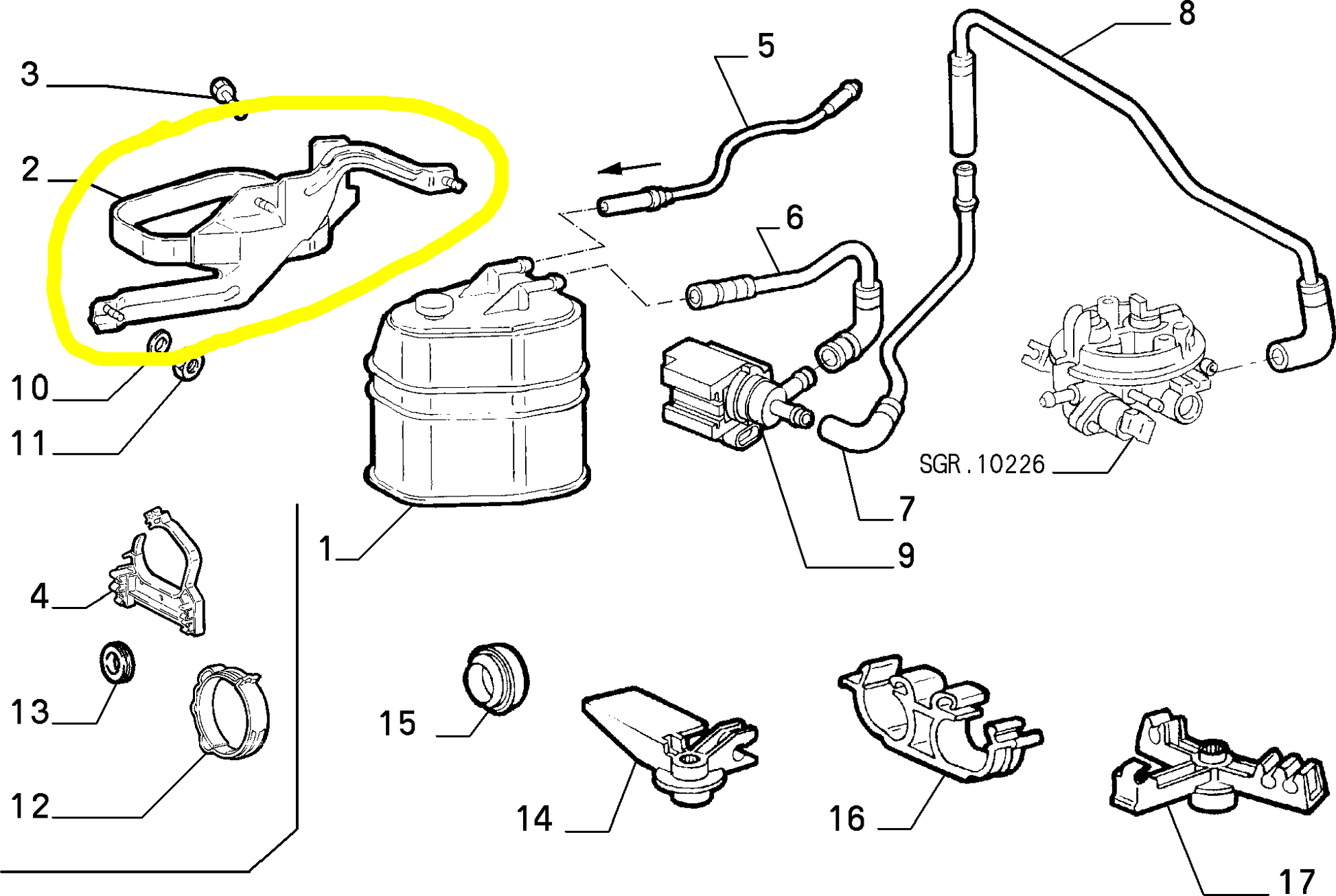 Lancia Y (95-00) Fiat Punto (93-97) Staffa Filtro Vapori Benzina.